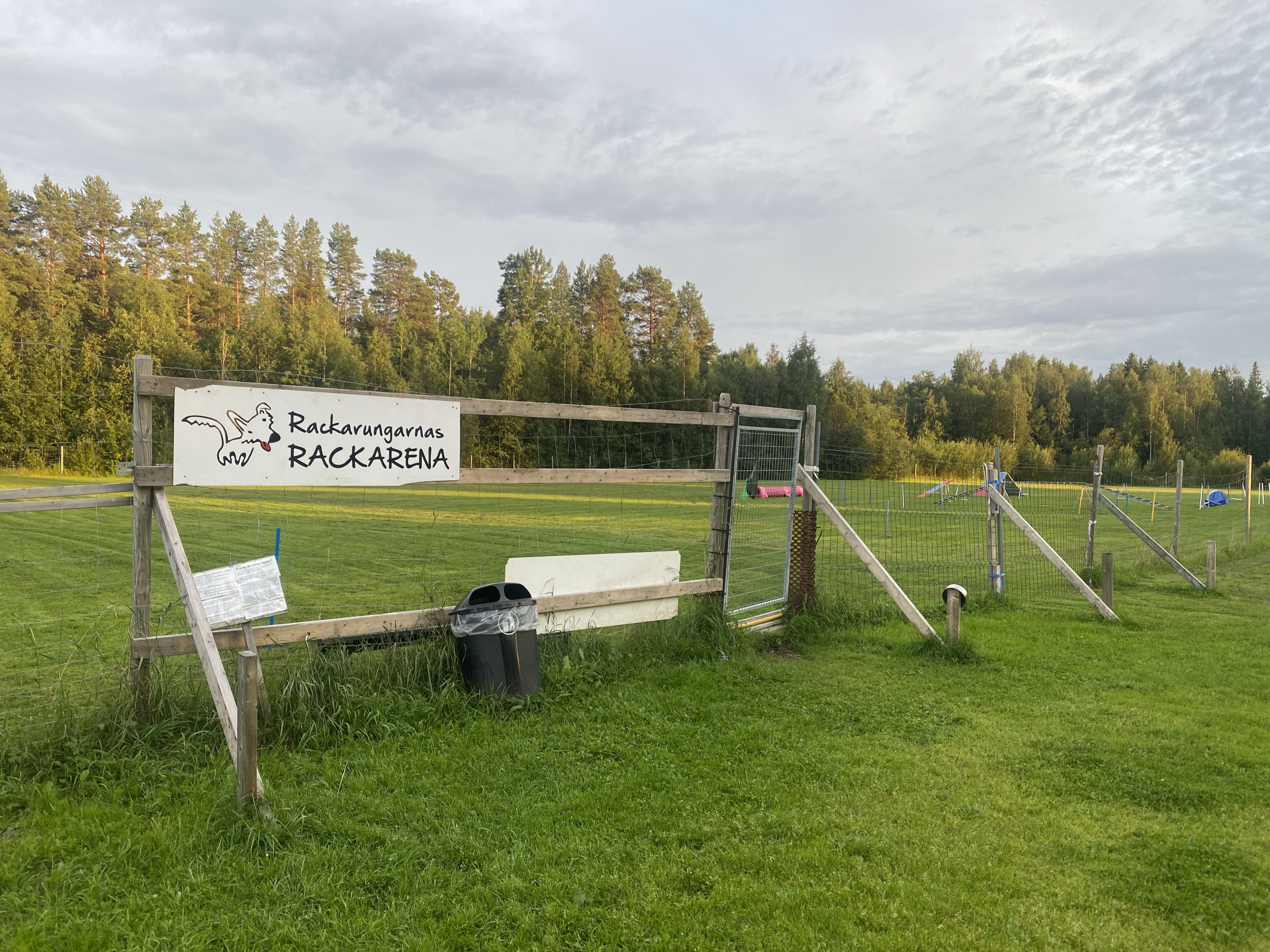 - Inhägnaden RackArenan: en stor inhägnad yta med bland annat en agilitybana och bruksstege. Går att boka. BOKNINGAR HITTAR DU LÄNGST UPP PÅ DENNA SIDA. När någon bokat är är i inhägnaden så får man inte komma in och släppa sin hund lös. Alla hundar älskar inte alla hundar. Så kolla bokningar innan. LÄNGST NED på denna sida.