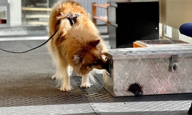 Vi kommer att göra på samma sätt som när jag (Susanne) tränade räddningshundar under nästan 20 års tid. På samtliga ställen får alla deltagare inleda med miljöträning. Efter det sätter vi ut Nose Work-gömmor och låter hundarna söka. Ofta kommer vi att använda oss av pairing, att lägga godis eller leksak intill doftgömman, för att ge hundarna en jackpot och peppa lite extra.