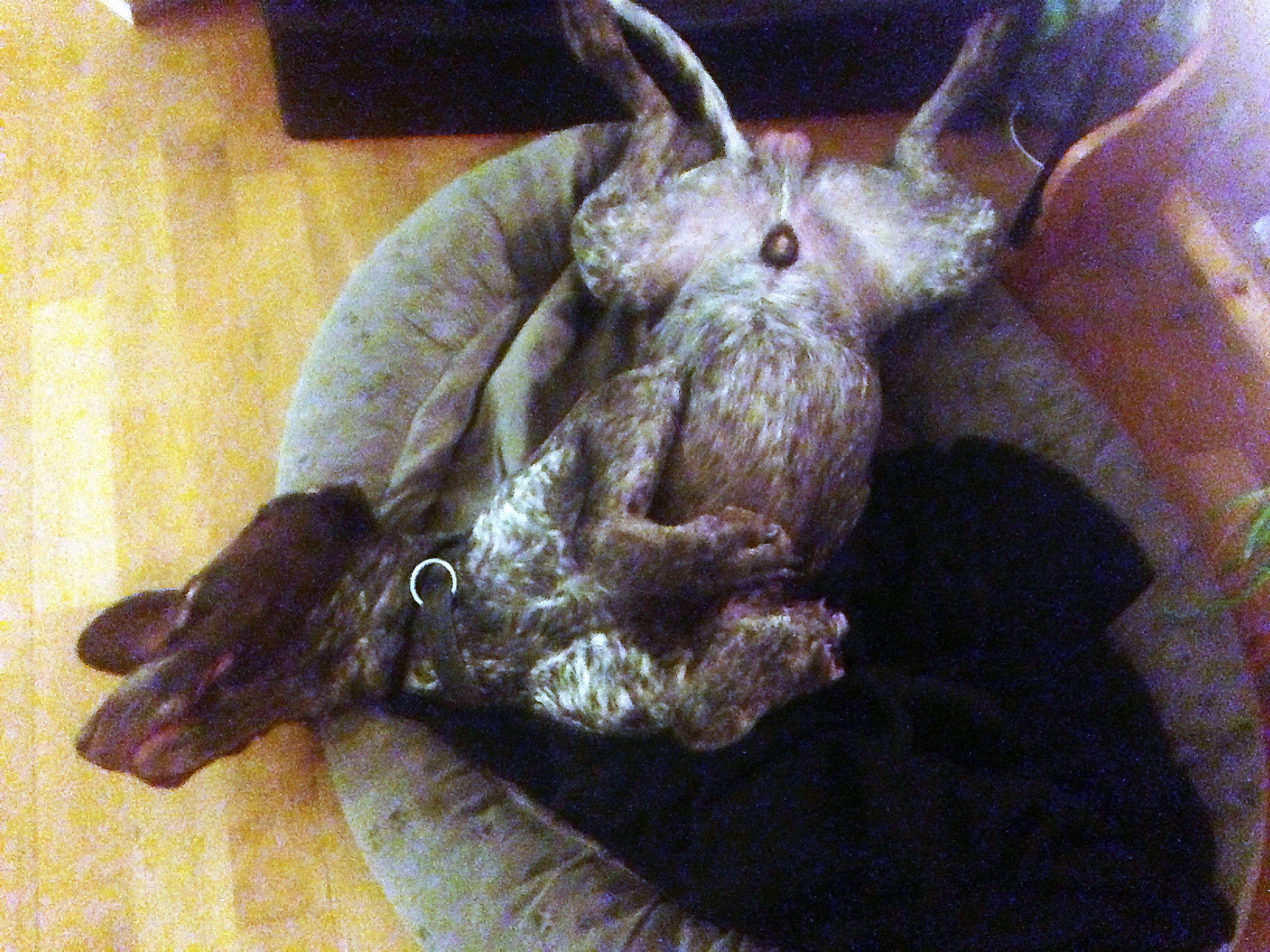 För hunden vill vara med. Den vill ha koll. I varierande grad förstås, men om jag ser till min unga vorsteh så tycker han inte att det är så kul att ligga i hallen när jag sitter och ser tv i vardagsrummet. Han känner sig inte helt trygg när han inte ser sin kära matte. Det gör att han inte kan vila och slappna av på det sätt som jag vill att han ska göra. Och det gör att det mer blir en sorts tråkig uppgift att ligga på bädden istället för att frivilligt slå sig till ro. Men när han ligger på sin bädd i vardagsrummet så snarkar han gott.