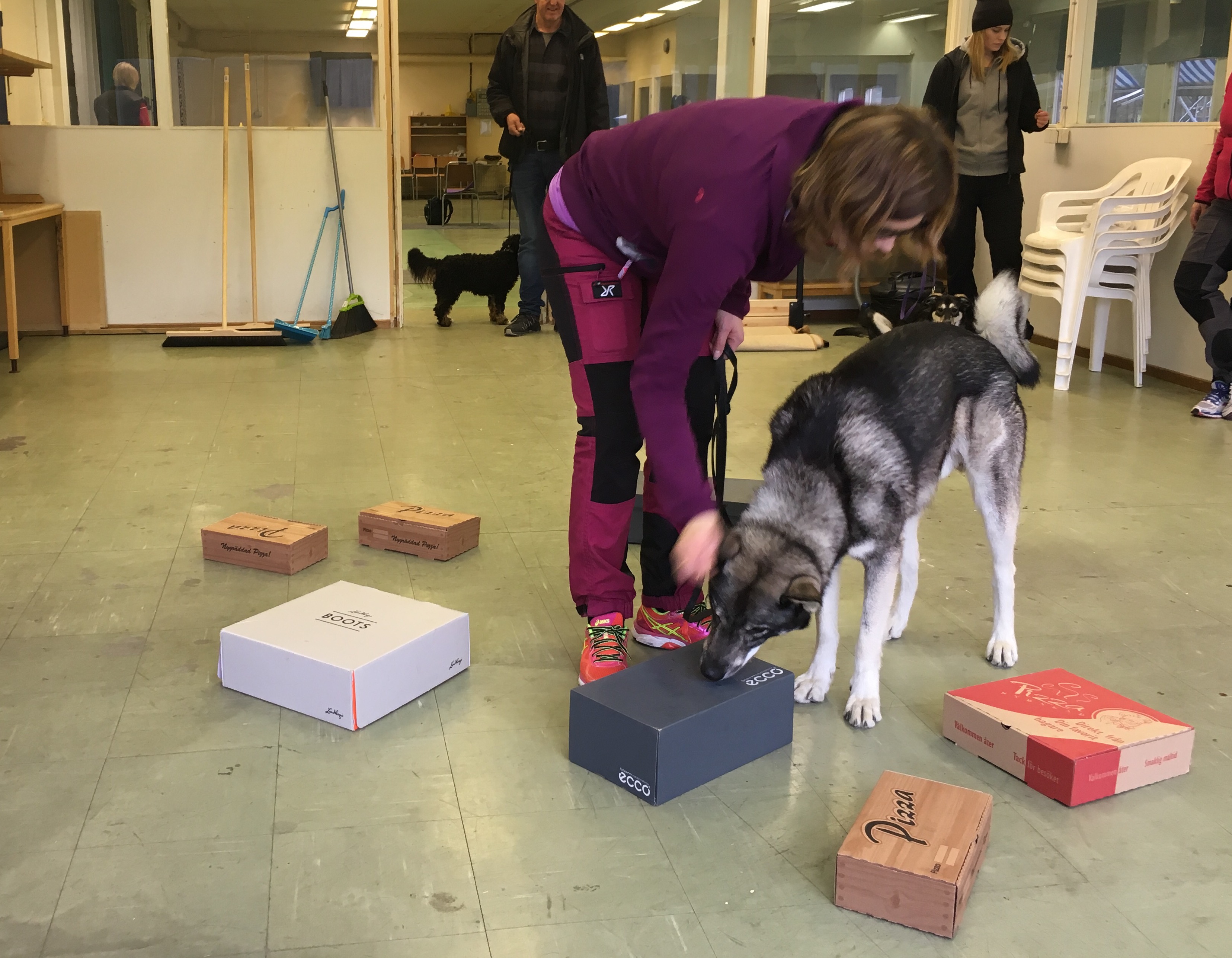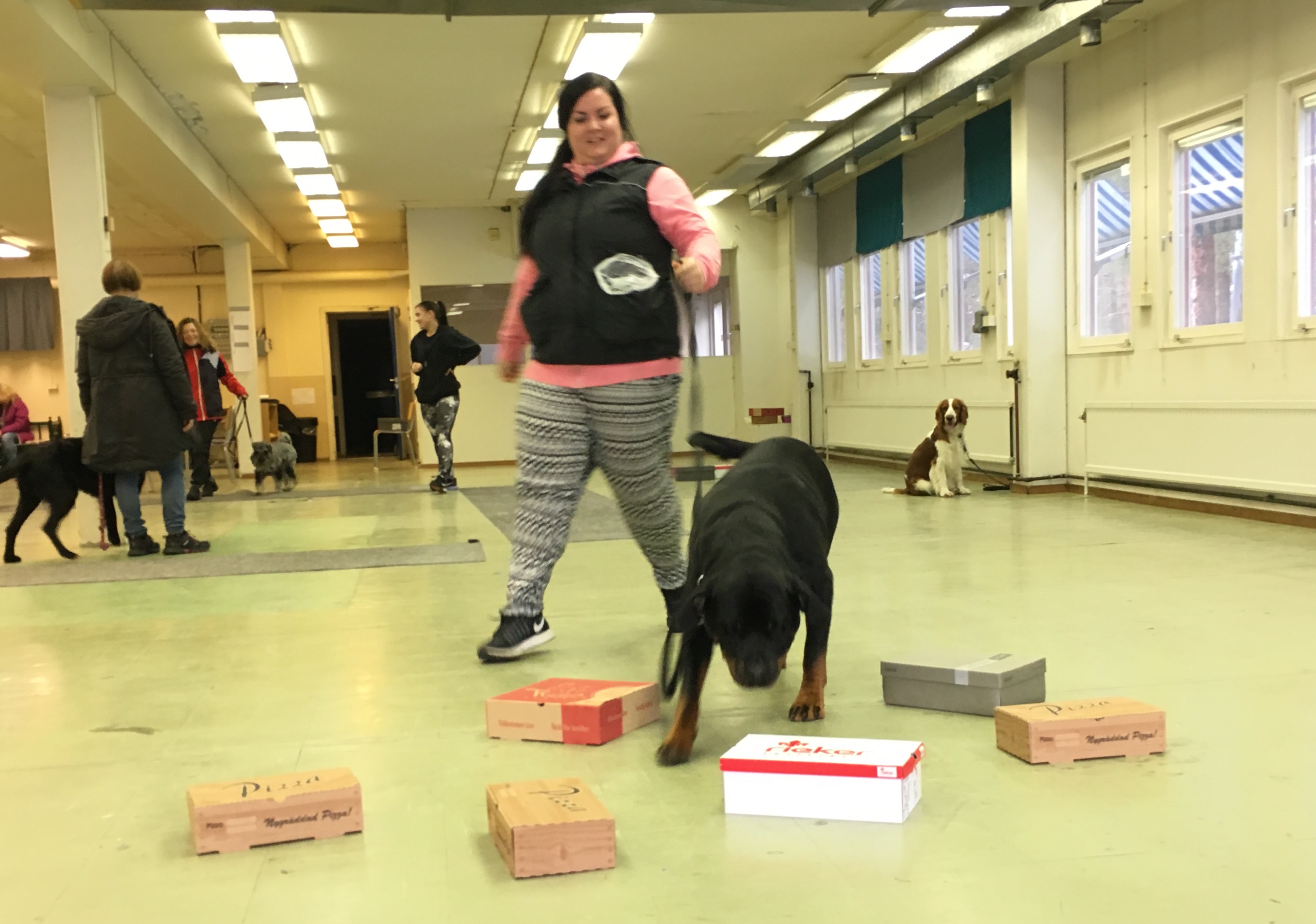 På alla mina kurser får deltagarna på sista träffen utvärdera kursen. Den här sista träffen på allmänlydnadskursen ägnades åt att introducera Nose Work.