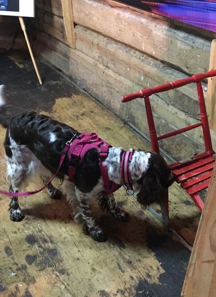- Behöver hunden mer hjälp med att träna sig på att vara självständig så kan du backa i träningen och lägga godis intill doften och/eller göra så kallade synretningar. Det innebär att du eller en kompis visar hunden att ni har doften och/eller godis och så smyger ni iväg som ”Hemlige Arne” och pillar lite här och lite där så hunden blir peppad att få sticka iväg och söka. Vill man inte visa för uppenbart var man gömmer doften kan hunden få se hur man ”smyger” in i ett rum, stänger dörren och så får den gärna höra hur man stökar runt där inne. När man kommer ut får hunden sticka in och söka rätt på vad man gömt.