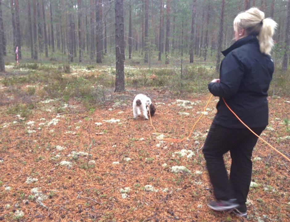 Hur löser du det? Det blir att backa i träningen, se till att verkligen ha stark medvind på spåret och lägga godisar här och var under dina fötter medan du går. Det gör att det blir mer värdefullt för hunden att verkligen stoppa ned nosen i blåbärsriset och lukta. Du kan börja med några riktigt goda godisar som korv eller köttbullar. Sedan när hunden blivit bättre kan du börja lägga torrfoder eller liknande längs spåret. Det gör att hunden får hjälp att förstå var det är värdefullt att hålla sig, men den behöver inte stanna upp hela tiden för att smaska på godisarna. Torrfoder är sällan värd den uppoffringen liksom =)