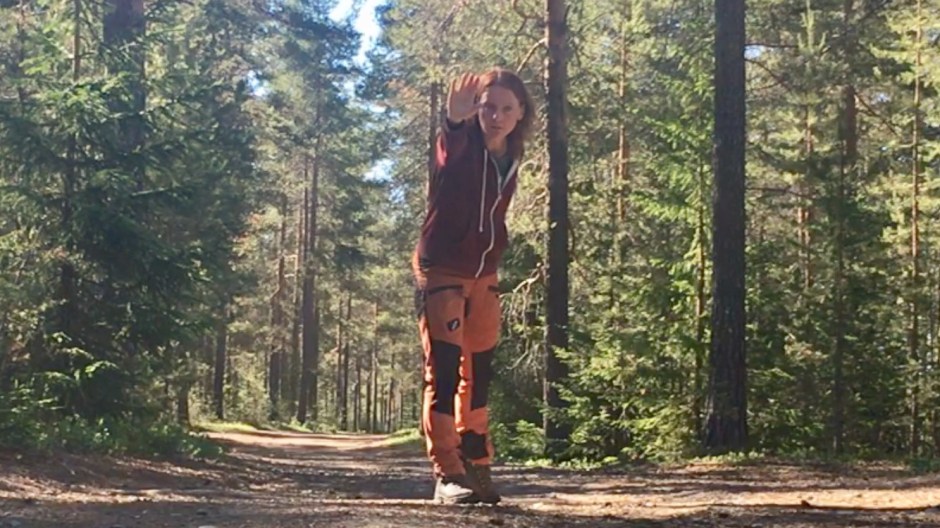Jag har en sorts reptilhjärna som slår in direkt sådant här händer. Dels för att jag blir så förbannad över att den här hundens ägare har noll koll. Dels för att jag vill skydda mina egna hundar. Jag blir som en lejonhona som vill skydda sina små. Så jag gör ett tydligt, högljutt och dominant motangrepp. Jag gör det tidigt, direkt jag ser att hunden kommer. Jag tar ett stort steg fram, stampar ordentligt i backen just då, kastar fram en eller båda mina händer till en tydlig stoppsignal samtidigt som jag ryter ”NEJ!!” från djupet av mitt hjärta. Direkt efter ryter jag saker som ”Du stannar DÄR!” eller ”GÅ HEM med dig!”. Hela tiden ser jag enormt morsk ut, står kaxigt med handen som en fortsatt stoppsignal. Mina hundar håller jag i ett kort koppel bakom mig för att dels signalera till dem att jag tar hand om det här, dels för att minska möjligheten att den attackerande hunden ska få ögonkontakt med dem. Så här kan det se ut. Dock har jag filmat utan mina hundar, för att inte jaga upp dem i onödan.