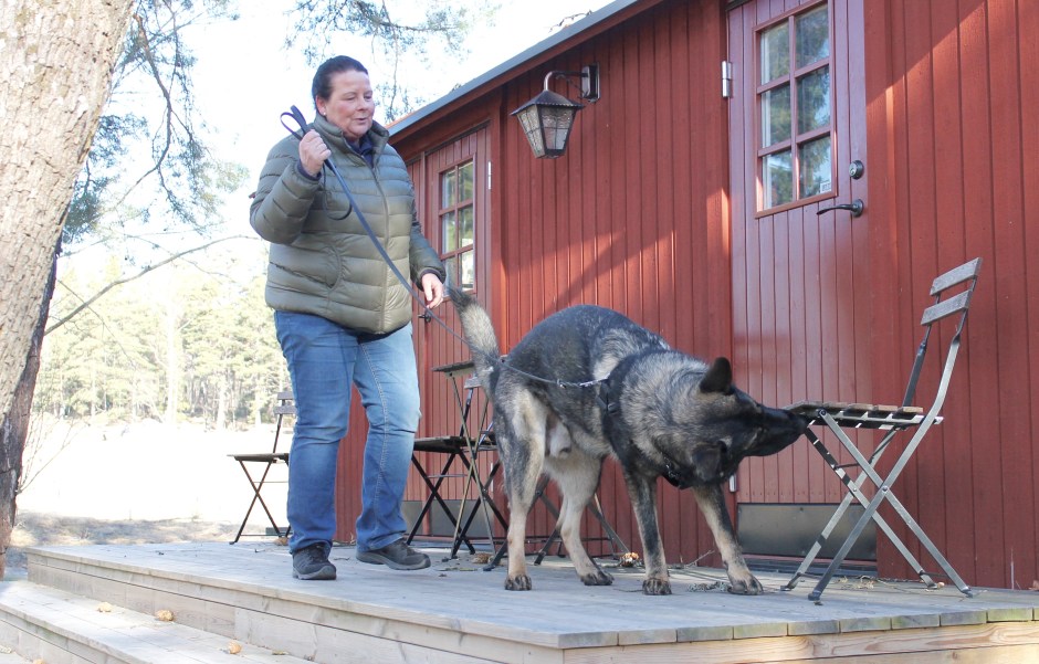 Men man vill förstås att hunden ska förstå att den där har vi redan hittat, nu är vi på jakt efter nya doftgömmor. Jag försöker för det första se till att hunden inte får chans att gå tillbaka till gamla funna gömmor – genom att exempelvis stå i vägen eller visa framåt mot nya oavsökta områden. I början kan man även plocka med sig den funna gömman så att hunden inte distraheras av den i sitt fortsatta sök. Men förr eller senare bör du träna på att gömmorna finns kvar. Och skulle hunden då hinna till doften så säger jag ”bra, bra” i en speciell ton som min hund har lärt sig betyder typ ”bra att du hittade den där, men godisknappen har slutat funka eftersom du redan har hittat den”.