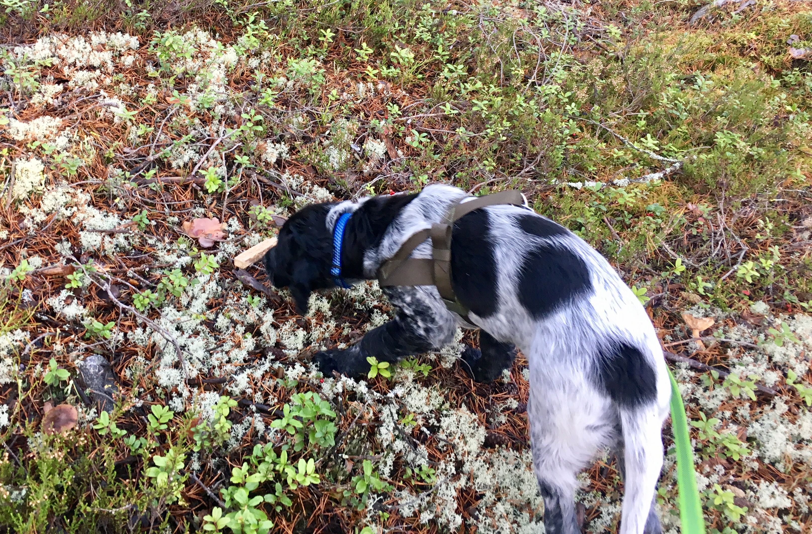 Något av det absolut mest fascinerande är att låta en valp reda ut sitt första spår. Det går sannerligen inte snabbt. Men det är underbart att se hur instinkterna och glädjen att få använda nosen gör att valpen löser uppgiften.