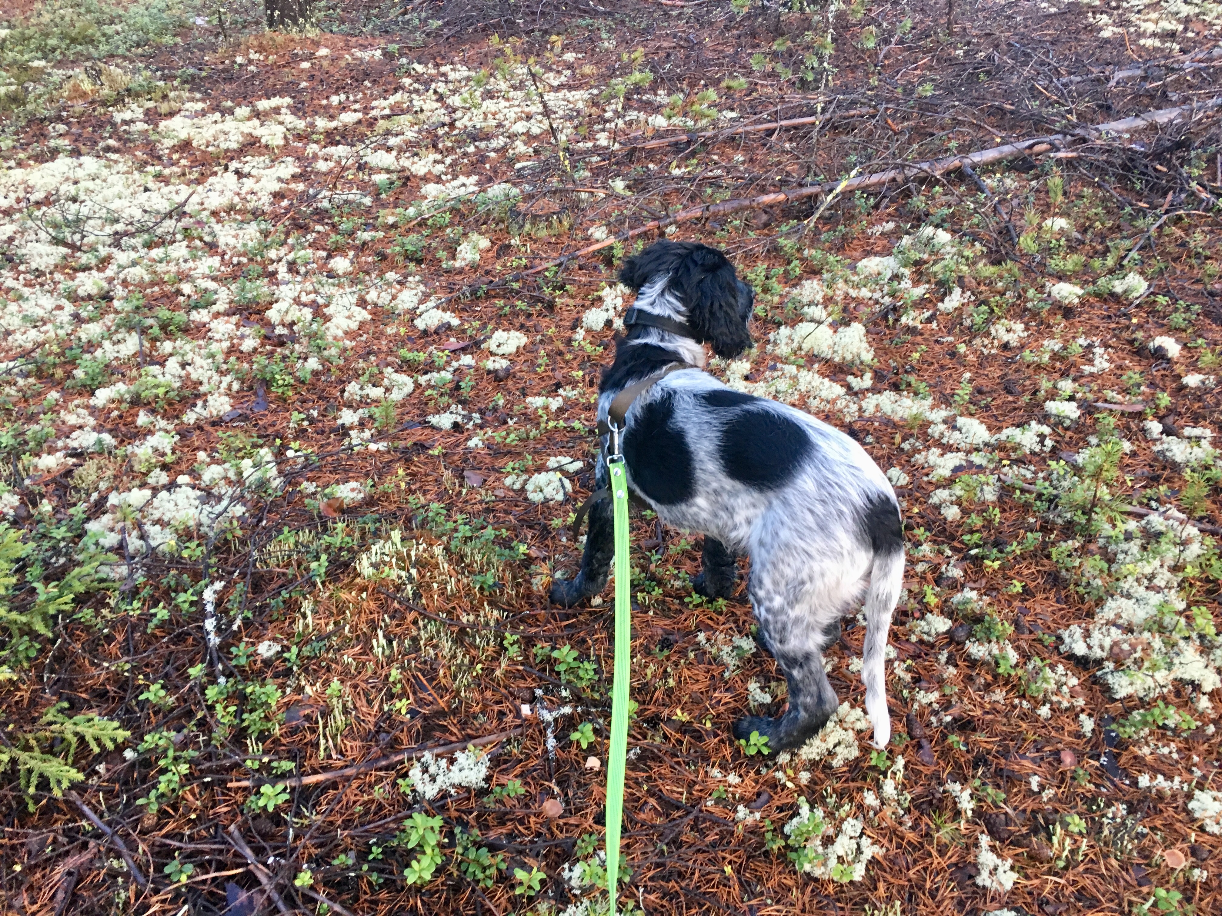 Har du läst berättelsen om när jag spårade med min grosser münsterländervalp Skott för första gången? Annars kan du kika här. Han var ju rätt skeptisk. Det var ju en stor, läskig skog. Dessutom gick det ju förbi några mystiska människor just när han hade två meter kvar till slutet. Skott verkar inte alls särskilt feg i vanliga fall, men det verkar vara lite väl tufft att vara helt själv i skogen bara med mig.