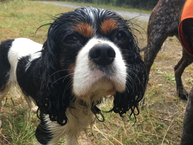 Jag har tränat hundarna riktigt mycket faktiskt. Minst ett pass om dagen de sista veckorna. Ibland tre korta pass per dag. Vi har spårat långa spår i lina, korta spår där de ska spåra och hämta fågeln på egen hand, korrekta avlämningar vid vatten, lite dirigeringar, förmågan att minnas var fågel blev kastad (jisses så kass de varit på detta!!) och att simma längre sträckor. Min stackars sambo och son har fått hjälpa till att klafsa runt i myggrika vattendrag och kastat döda fåglar.
