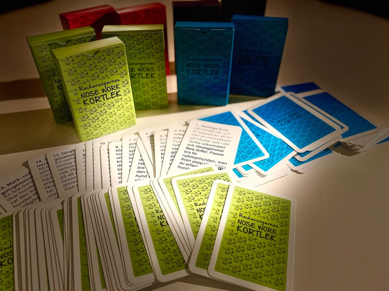 Hoppas att du ska bli nöjd med träningsschemat, återkoppla gärna med vad du tycker. Vill du beställa en Valpkortlek så kostar den 449 kr, den finns i ljusblå och rosa – samma innehåll. Frakt 60 kr tillkommer. Är du uppfödare och vill köpa 4 kortlekar eller fler så får du dem för 350 kr styck, alltså 99 kr rabatt per kortlek. Frakt tillkommer. Mejla din beställning till rackarungarnashundskola@outlook.com.
