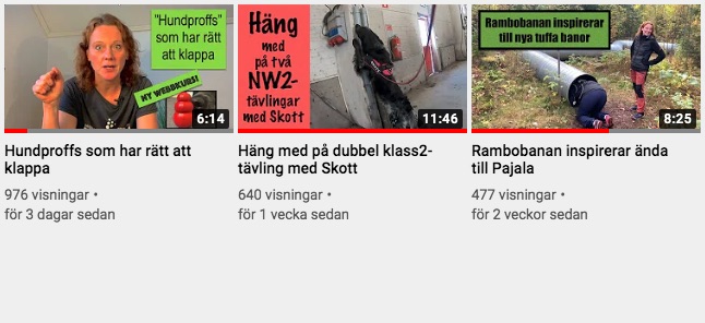 På Rackarungarnas Youtube-kanal får du många gratistips. Det handlar ofta om Nose Work och specialsök, men även valpträning, allmänlydnad, sånt som gör mig glad eller upprörd, tips på hur du kan bygga saker, eller bra grejer att köpa. Kort sagt – hundnördiga grejer!
