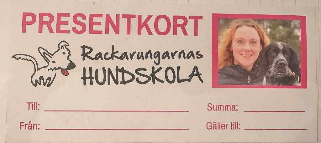 Det här är den perfekta presenten till hundägaren. Köp ett presentkort, och sedan får ägaren använda det till privatlektioner, kurser, webbkurser, böcker eller liknande.