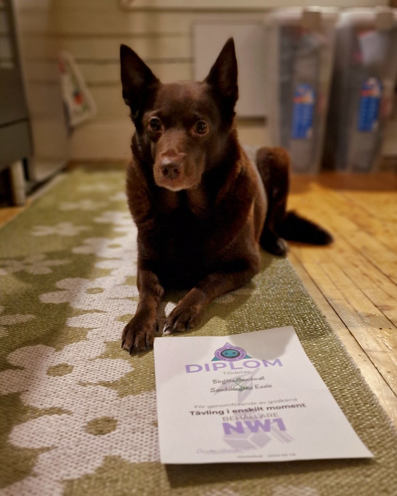 ”Det första som slog mig när jag bläddrade igenom korten var att man får en bra överblick av vad du tycker är viktigt/bra att en NW hund har i sitt register. Jag har ofta kombinerat fler övningar på samma träning. Exempelvis behöver Siri träna självständighet när hon söker löst. Då plockade jag ur korten med löst sök och pairing, kasta belöning, Wow sök och skattkistesök. Det gav en rejäl pepp till Siri och hon blev mer och mer taggad för varje gömma! Jättekul att se! Nu längtar vi till det blir barmark i skogen. Då ska vi göra stora långa sök med hängande gömmor, markgömmor och även där med lite överraskande belöningar! Jag har fått en mängd idéer och inspiration till olika pass vi ska köra! Ett riktigt guldverktyg att ha i den fortsatta NW-träningen 🤗🤩 Tack för att du delar med dig och att vi får ta del av alla dina smarta övningar!” Jenny Lundquist, Kalix, & dansk svenska gårdshunden Siri.