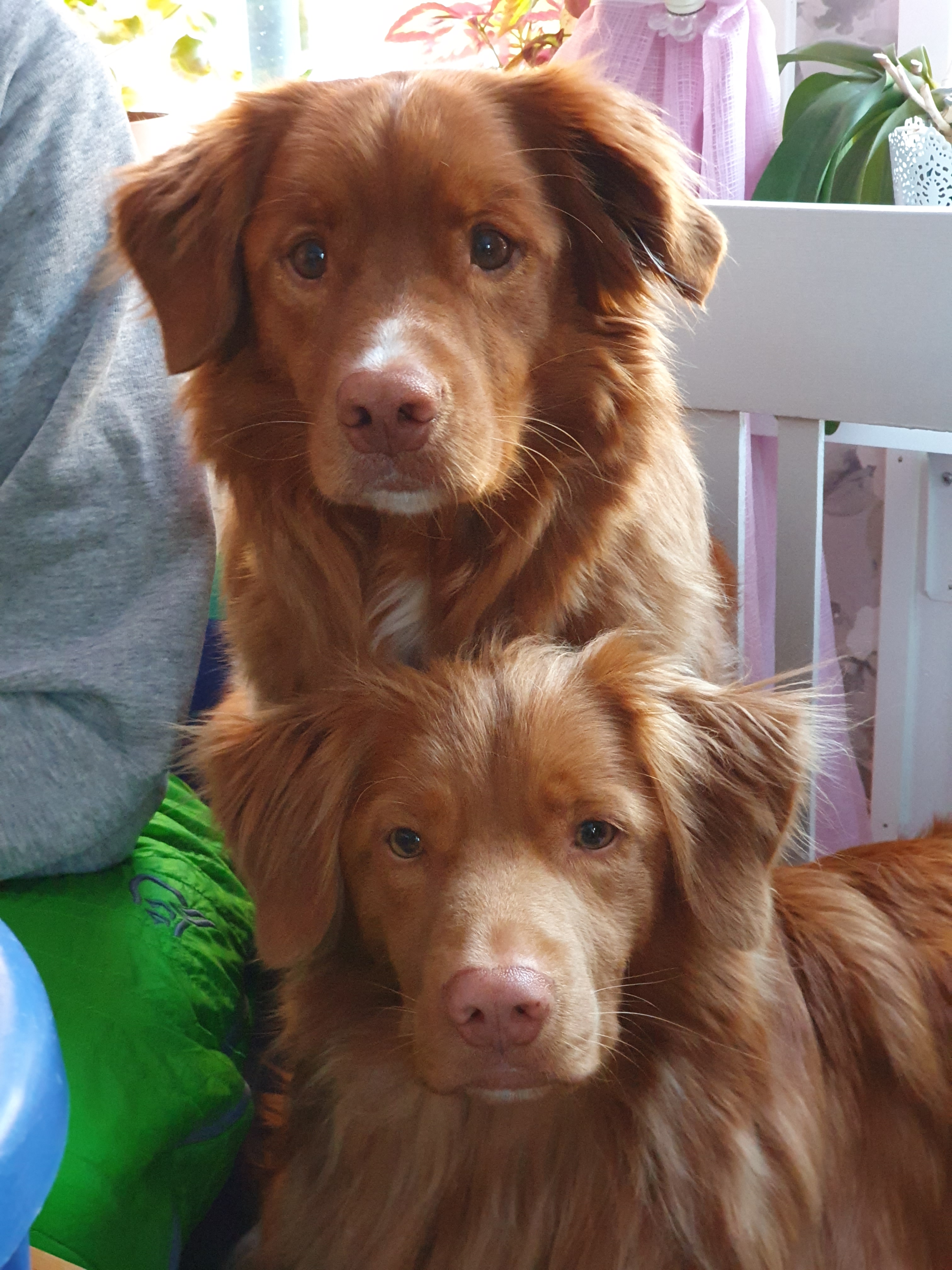 Lancarshire Heeler, en tik på snart nio år och en valp på 14 veckor.
