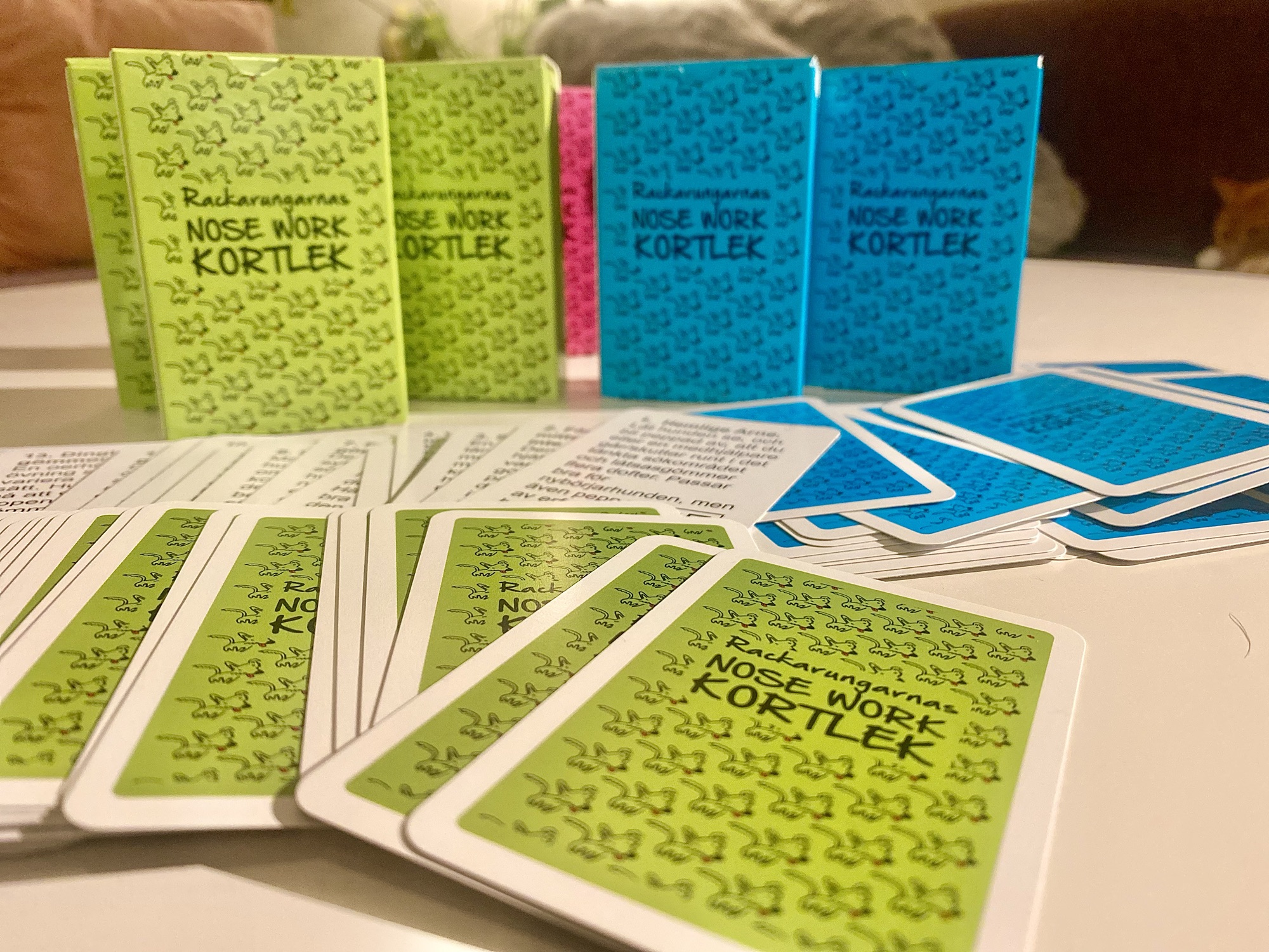 Om du tränar Nose Work så behöver du en Nose Work-kortlek – den redo att komma till dig och inspirera. Den finns just nu i färgerna turkos och limegrön. Samma innehåll =)