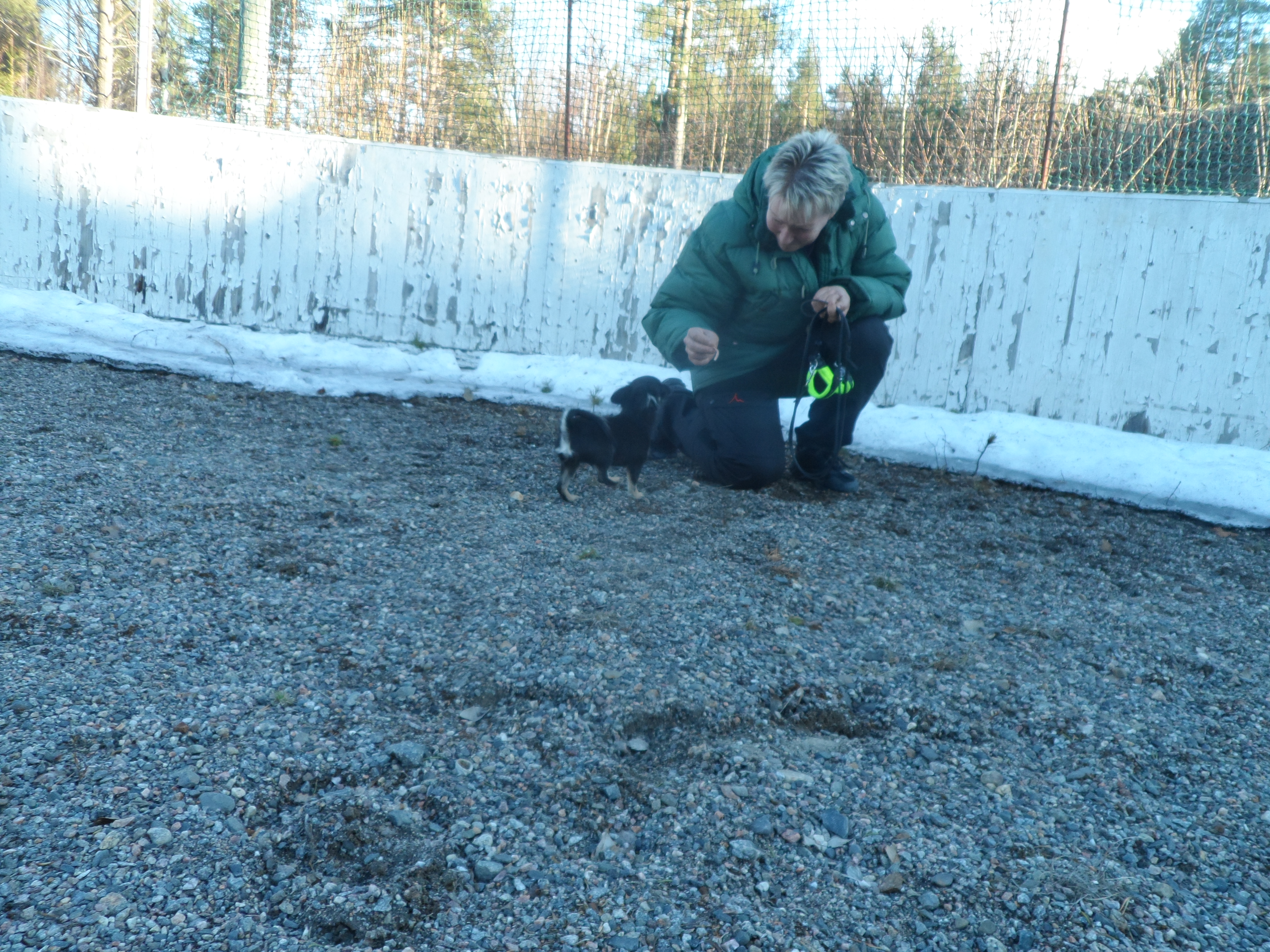 Allt detta märktes så väl vid Sallys besök. Första varvet ville hon inte alls vara med. Hon visade det genom att försöka ske skärrad ut ( en del hundar har faktiskt lärt sig det som en sorts manöver för att de lärt sig att man slipper undan då), spjärna emot eller försöka vara helt apatisk.