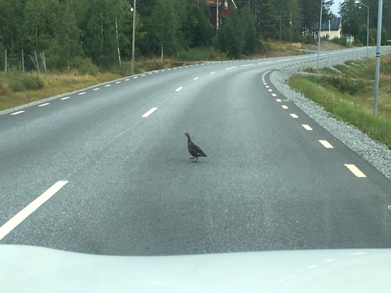 Och när jag åker hem så knatar en jaktbar fågel över vägen. Mitt framför bilen. Bara för att retas.