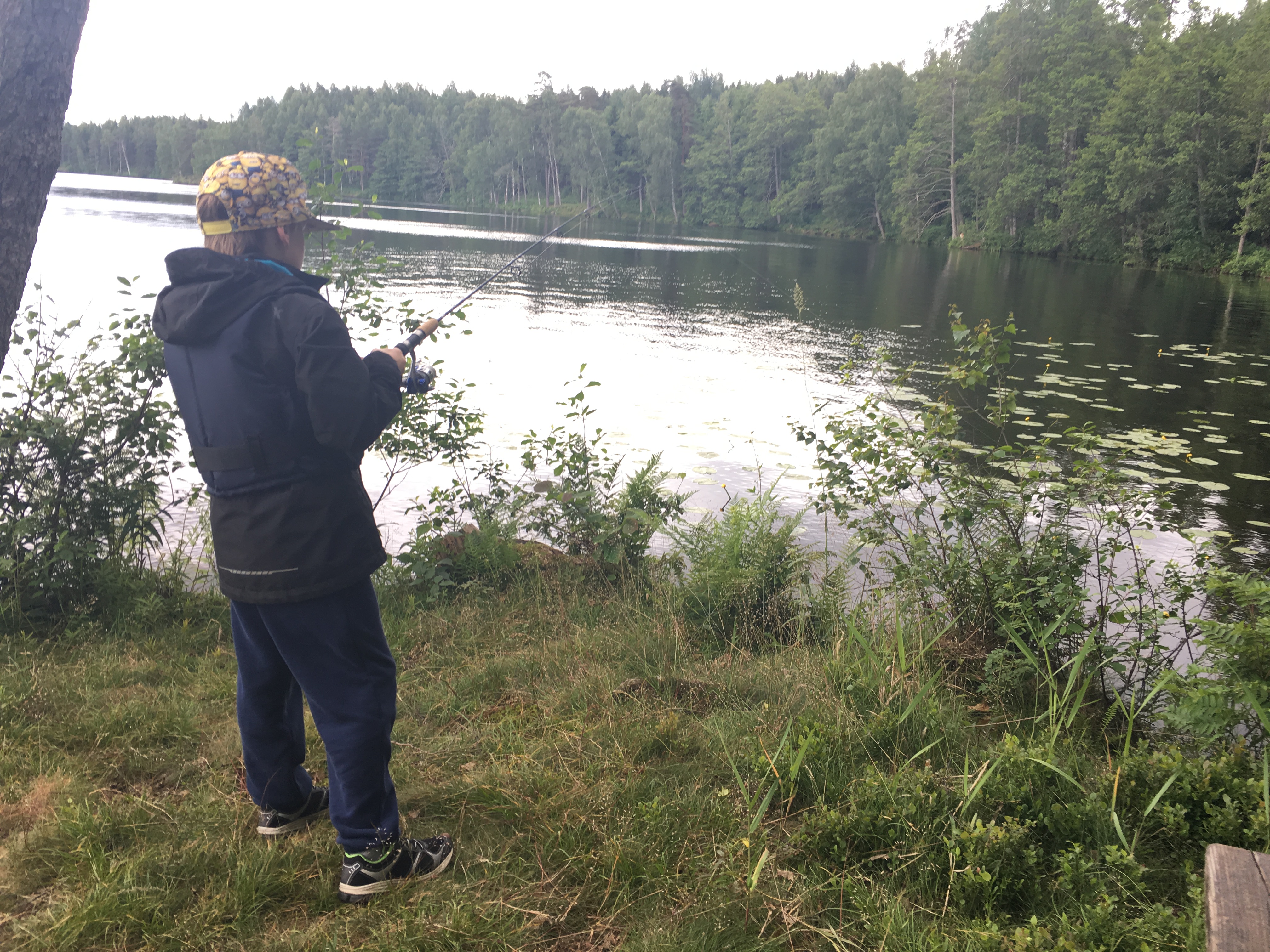 Grabben fiskar. Han var betydligt bättre än mig på att INTE få bottennapp.