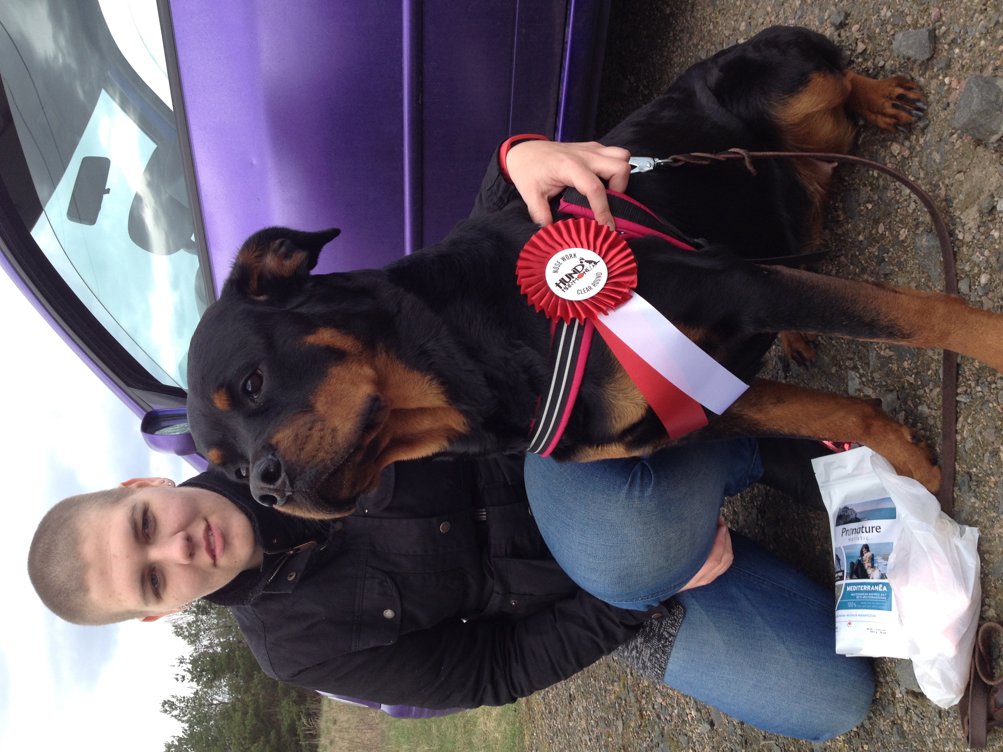 ”Hälsningar ifrån Skåne där våren blommar för fullt. Vi har just varit på vår första inofficiella nw tävling utanför Rackarungarnas regi. Clear round, behållarsök, utomhusssök och inomhus och Runa tog alla doft källorna. Tävlingsledaren tyckte vi hade en lugn och kontrollerad start, Runa har ett engagerat sök och visar tydligt markering. Minus var bara att jag drog i kopplet och det är bättre att visa tillbaka hunden med en förande hand så man inte stör hunden.