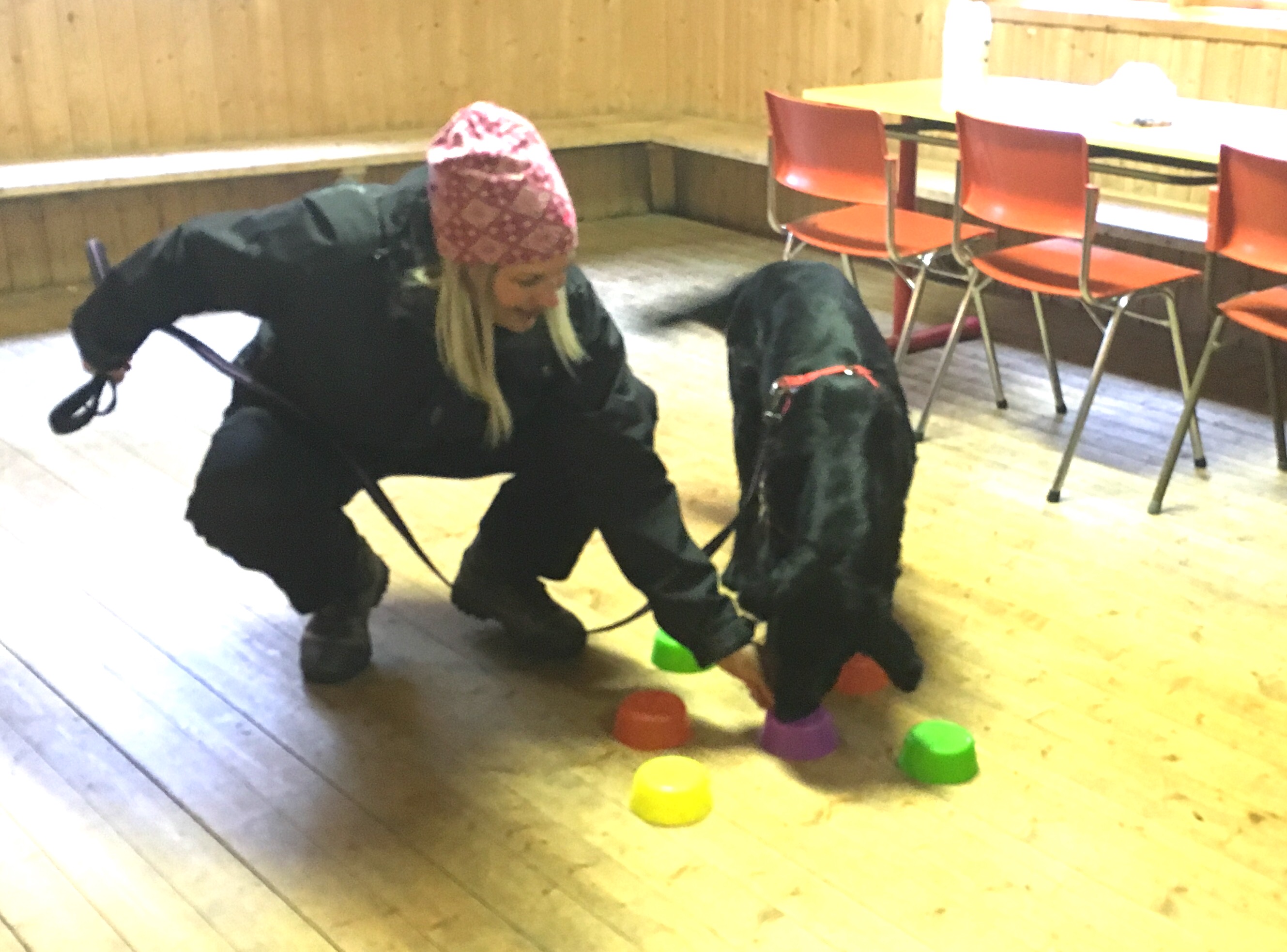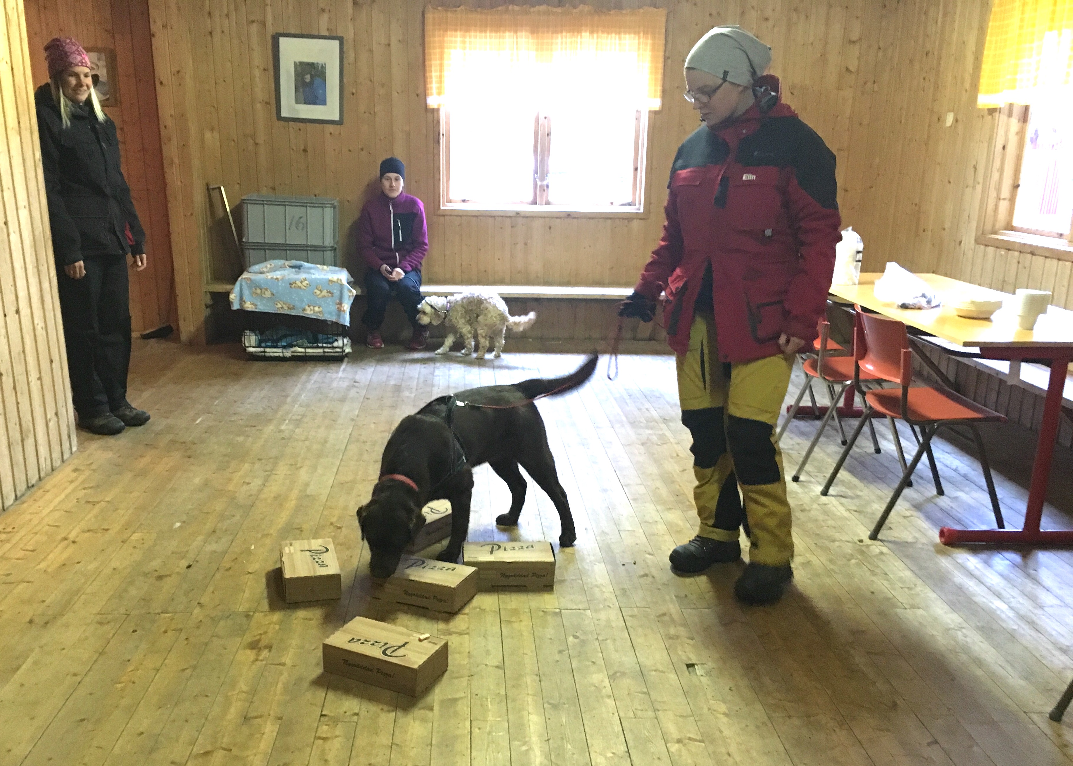 Det började på torsdag kväll med ett pass med en nybörjargrupp. Vi höll till på Kiruna Brukshundklubb och inledde med olika former av behållarsök. Hundarna fick hitta godis intill eukalyptusdoften upprepade gånger för att bygga upp värdet av doften.