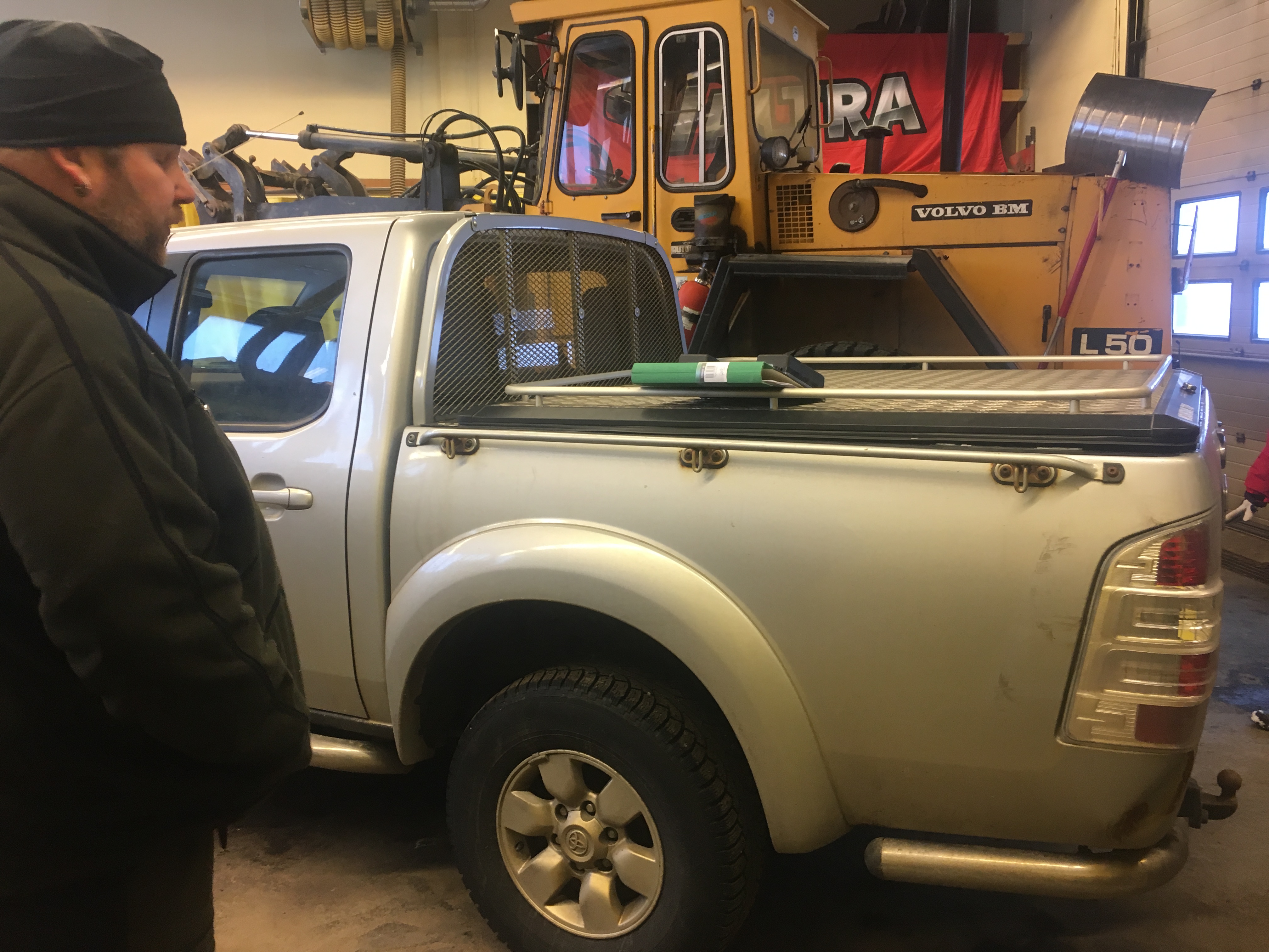 Sedan kollade vi in fordonssöket. Det bestod av två fordon. Startpunkten var mitt emellan de båda. Så min plan blev att gå in och börja vid draganordningen på det vita fordonet och sedan backa mig runt och ta andra släpet sen. Vi hade två minuter på oss. Det fanns två gömmor.