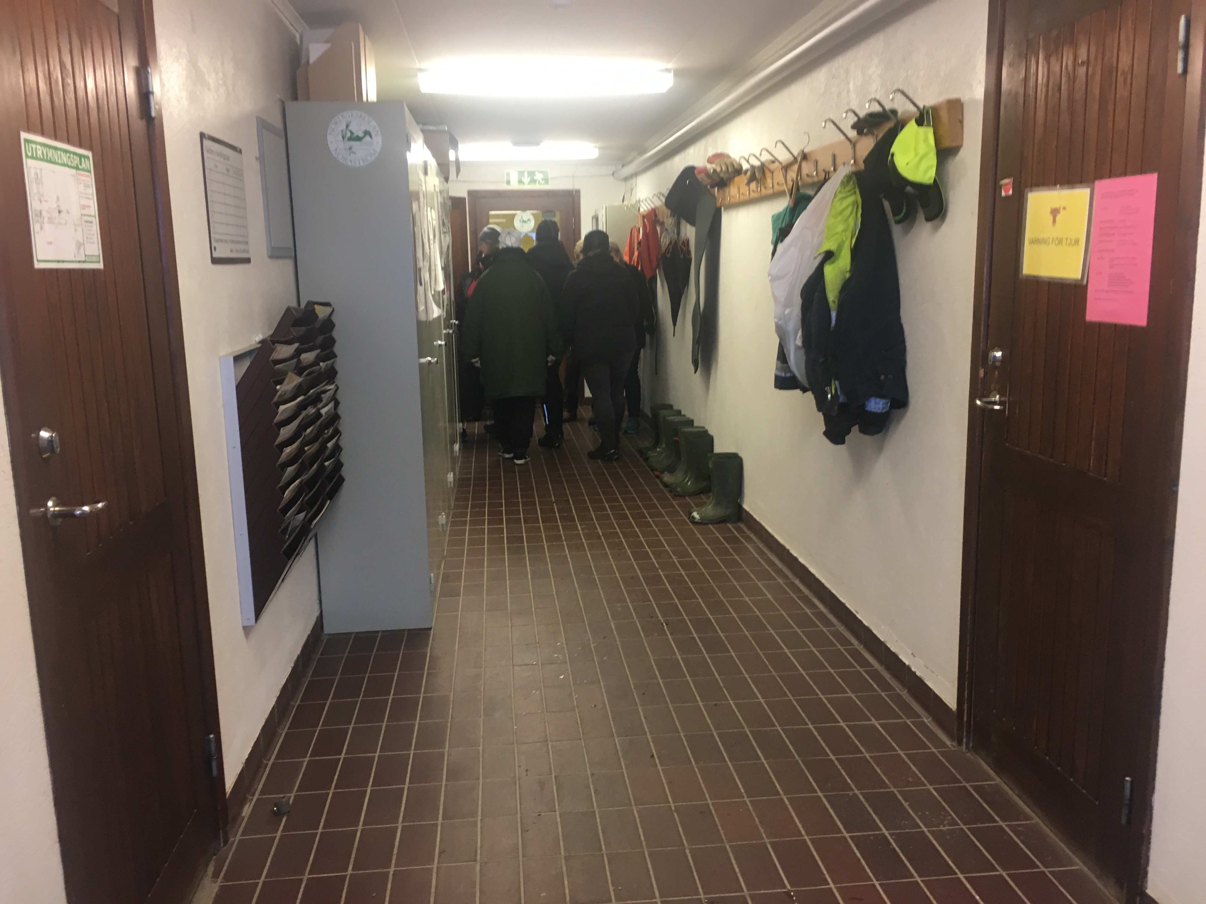 Vi började med fordonssök. Hittade båda gömmorna. Sedan utomhussök. Hittade båda doftgömmorna. Sedan inomhussök. Hittade båda doftgömmorna. Och så blev det precis samma scenario som dagen före. Behållarsöket sist. (Kom inte ihåg att ta en bild på det eftersom jag räknade skinn/plastväskor för brinnande livet.) Och vet ni vad – Hagel gick in, började söka, hittade en gömma och sedan blev han intresserad av några stolar som stod mot väggen. Nedanför stolarna fanns en väska. Var vi i samma situation igen? Att doften sipprade ut på miljön intill? Jag visade ned på väskan. Nu var det faktiskt en tygväska. Han kollade av den och tyckte inte det var så intressant. Men stolarna däremot … Å nej!