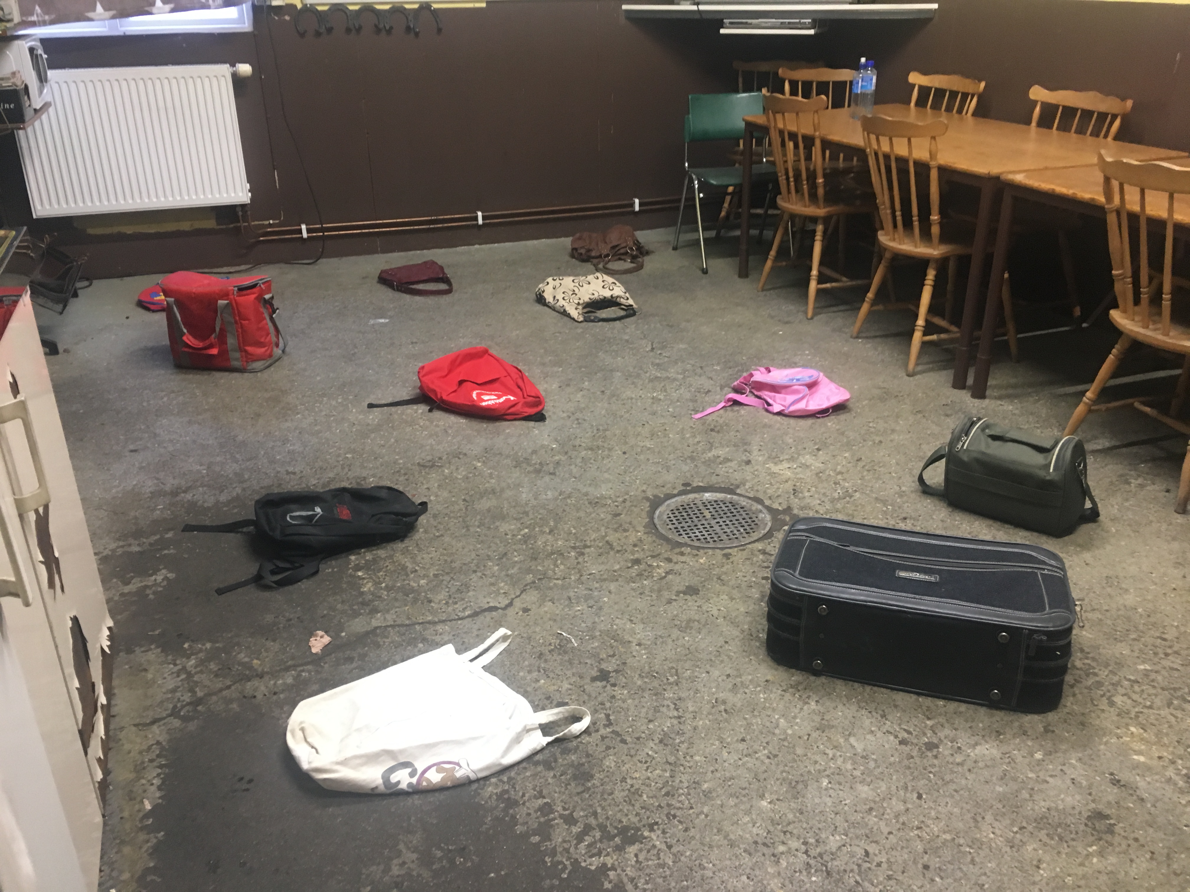 Slutligen var det dags för behållarsöket. Det såg ut så här. Bakom diskbänken till vänster fanns ytterligare en väska eller två.