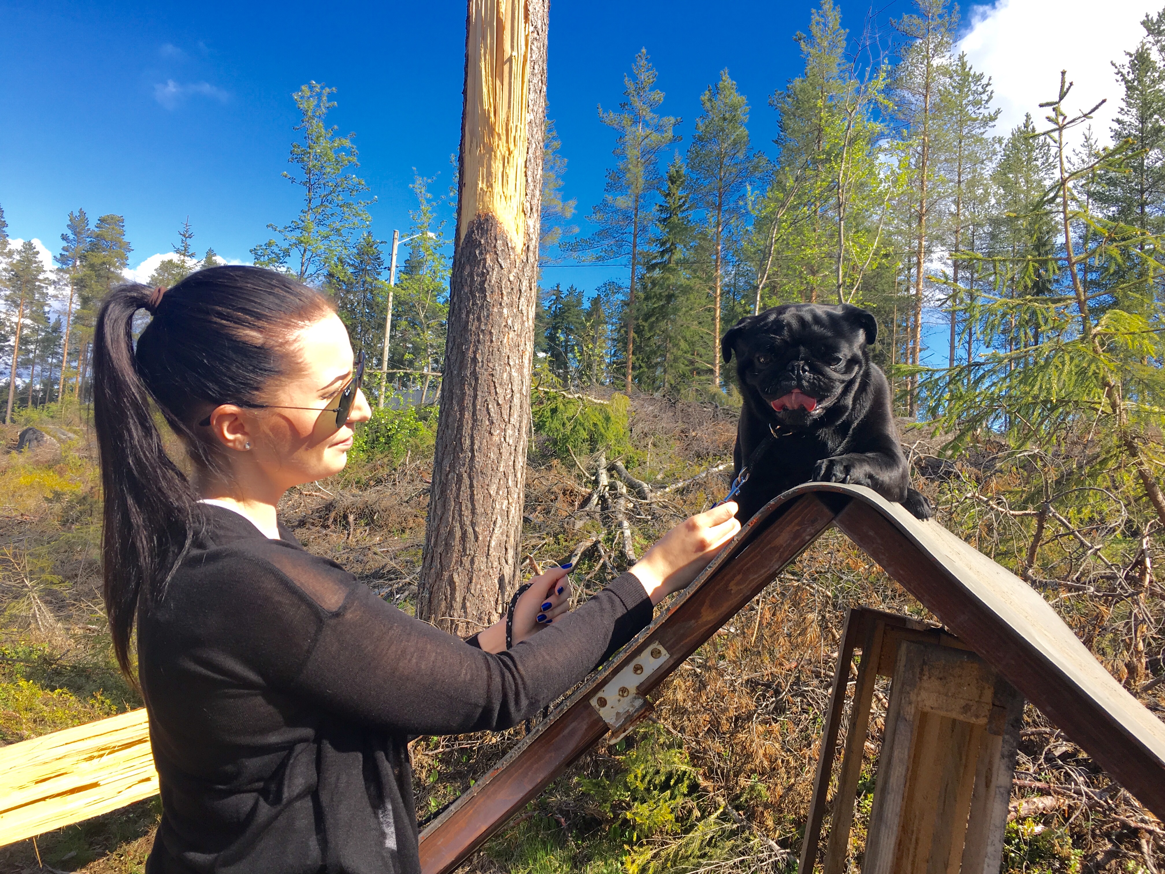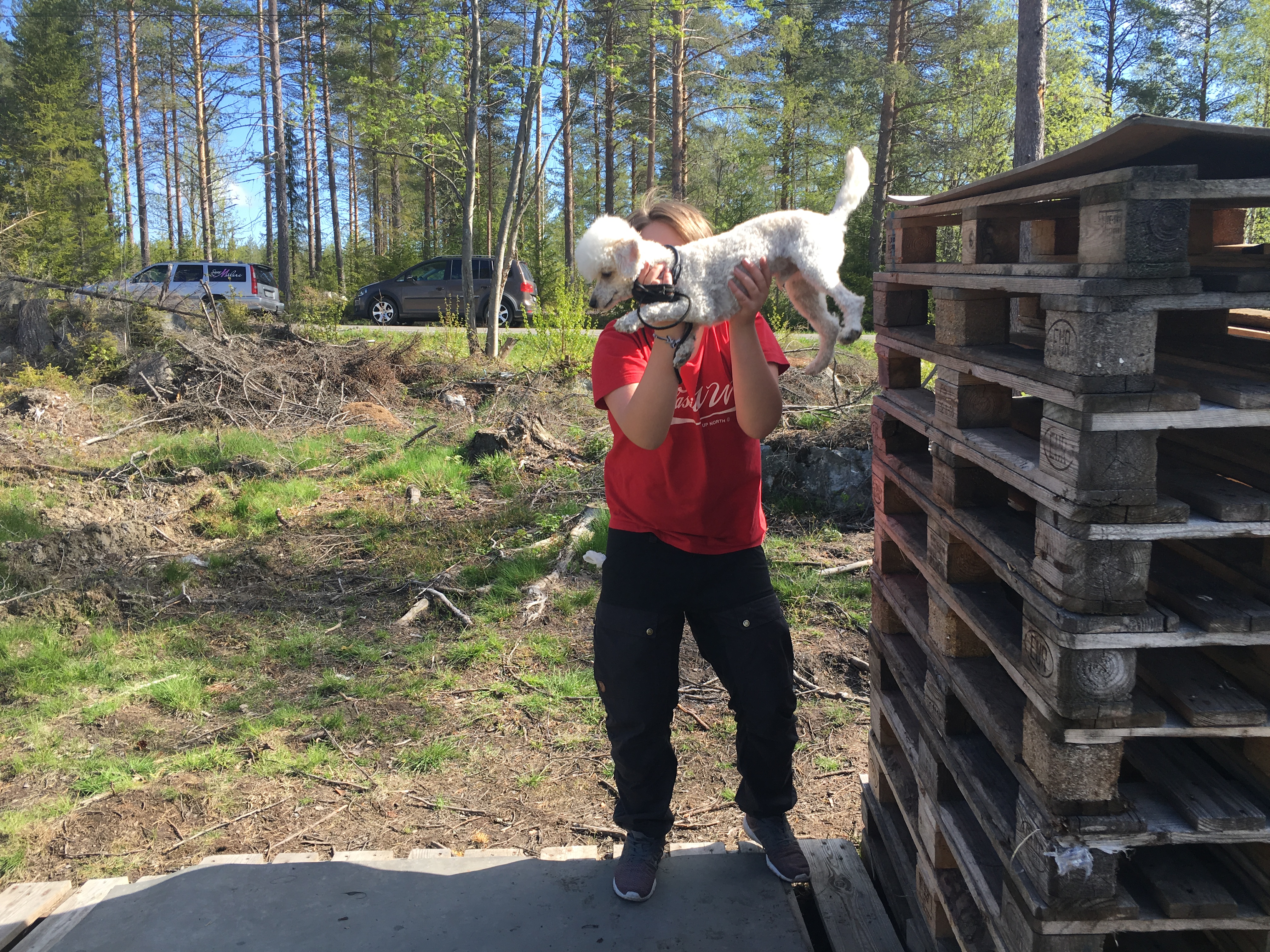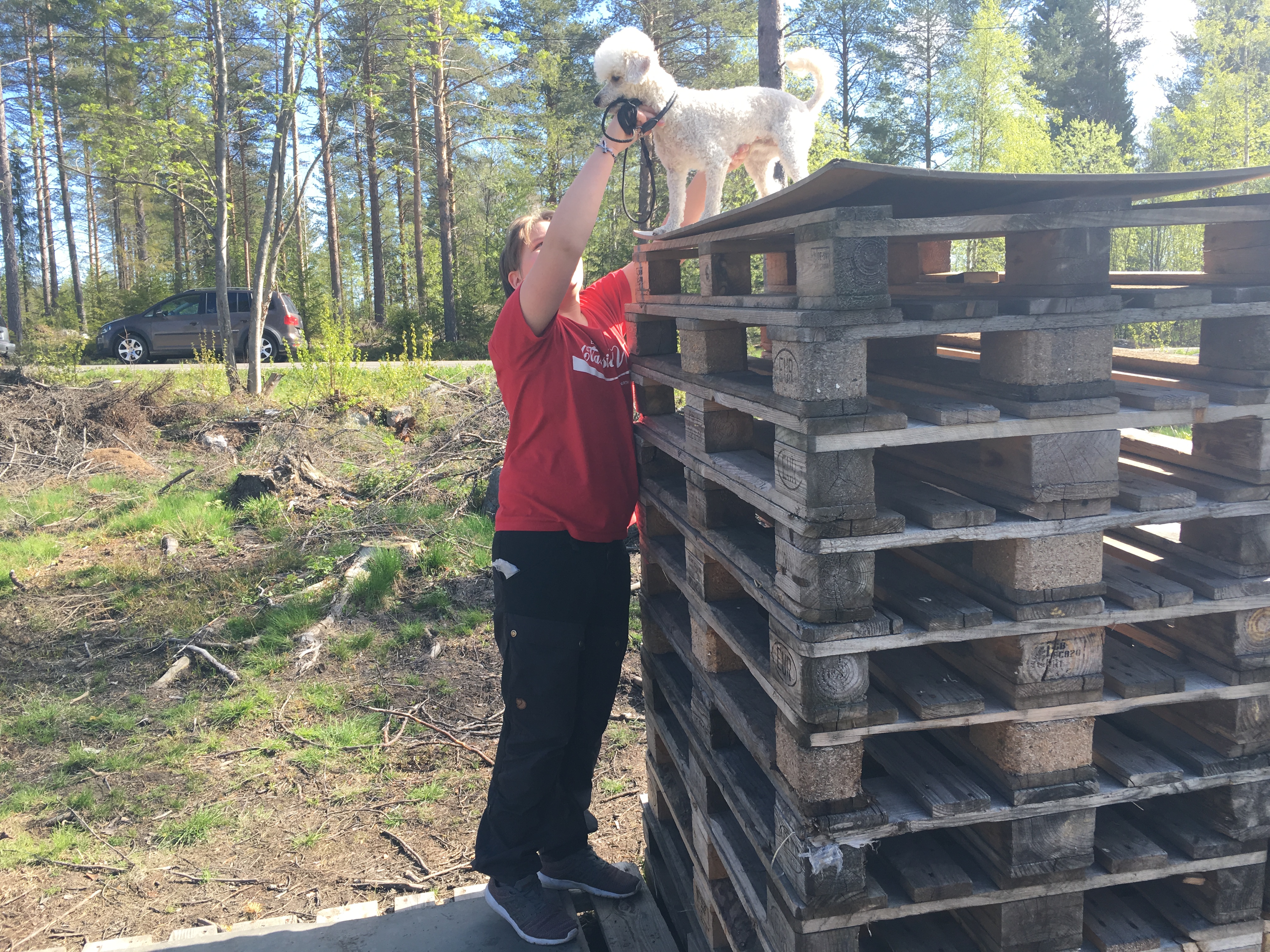 När jag dömer Nose Work-tävlingar så ser jag då och då hundar som inte kan söka fullt ut i området. Det är saker som hunden tycker är i vägen eller skrämmande. Bara att gå upp på en lastpall kan vara ett stort äventyr för en del hundar. Och sådant går ju faktiskt att träna till. Så man får en mer robust Nose Work-hund som inte låter sig hindras av minsta lilla.