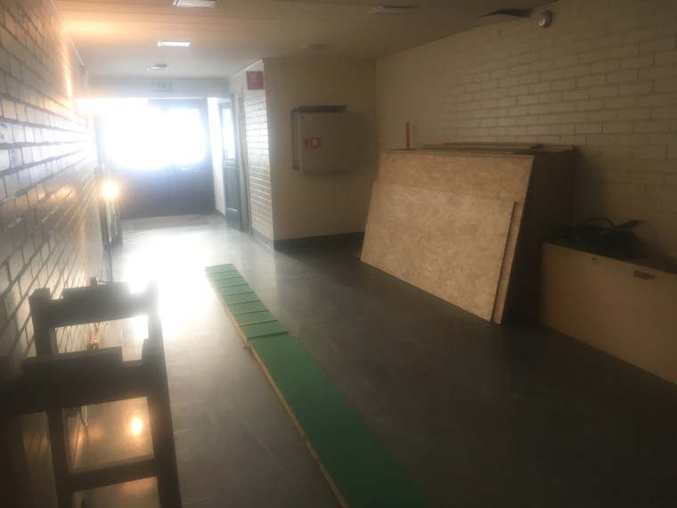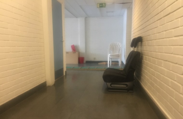 Vi avslutade med inomhussök. Vi hade tre minuter på oss. Det var en korridor formad som ett T. Vi började vid foten av T:et. Jag började mot väggen i första raka delen, sedan fick han kolla av soffan på höger sida innan vi drog vidare. Där fann han nåt intressant.