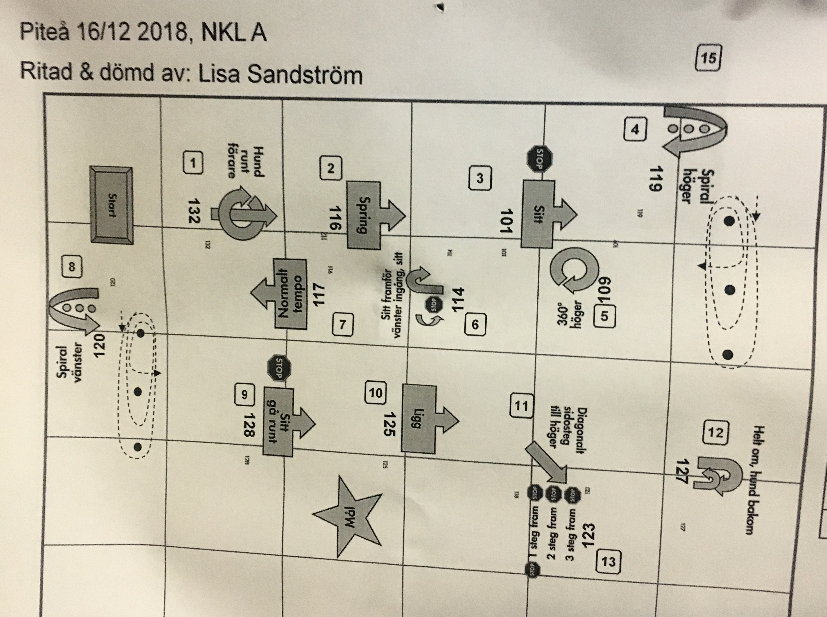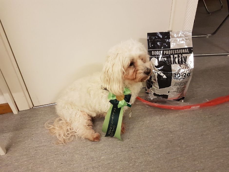 Och så ska vi ta ett till kvalificerat resultat i fortsättningsklass så vi kommer upp i avancerad klass i rallylydnad. Och så ska vi starta i klass 1 i lydnadsklass.