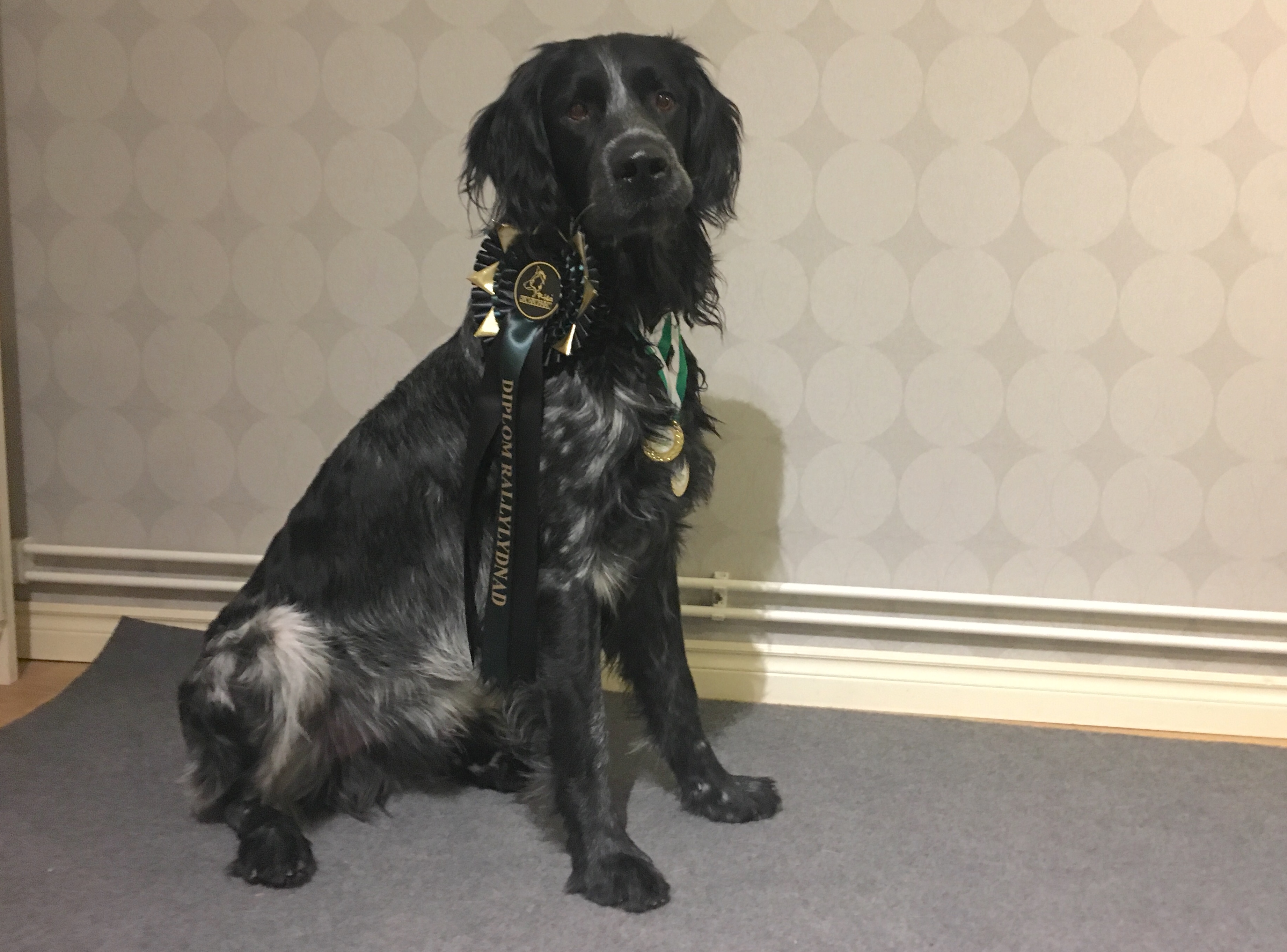 Portugisiska vattenhunden Trassel, som är 15 år och lever pensionatliv hos mina svärföräldrar, blev Svensk lydnadschampion. Tävlade bruks spår. Och gjorde en imponerade MH. ”Det är ju som en riktig brukshund” utbrast domaren. Men på utställning var han bara halvsnygg, vi tog inga cert. Så det blev inget.