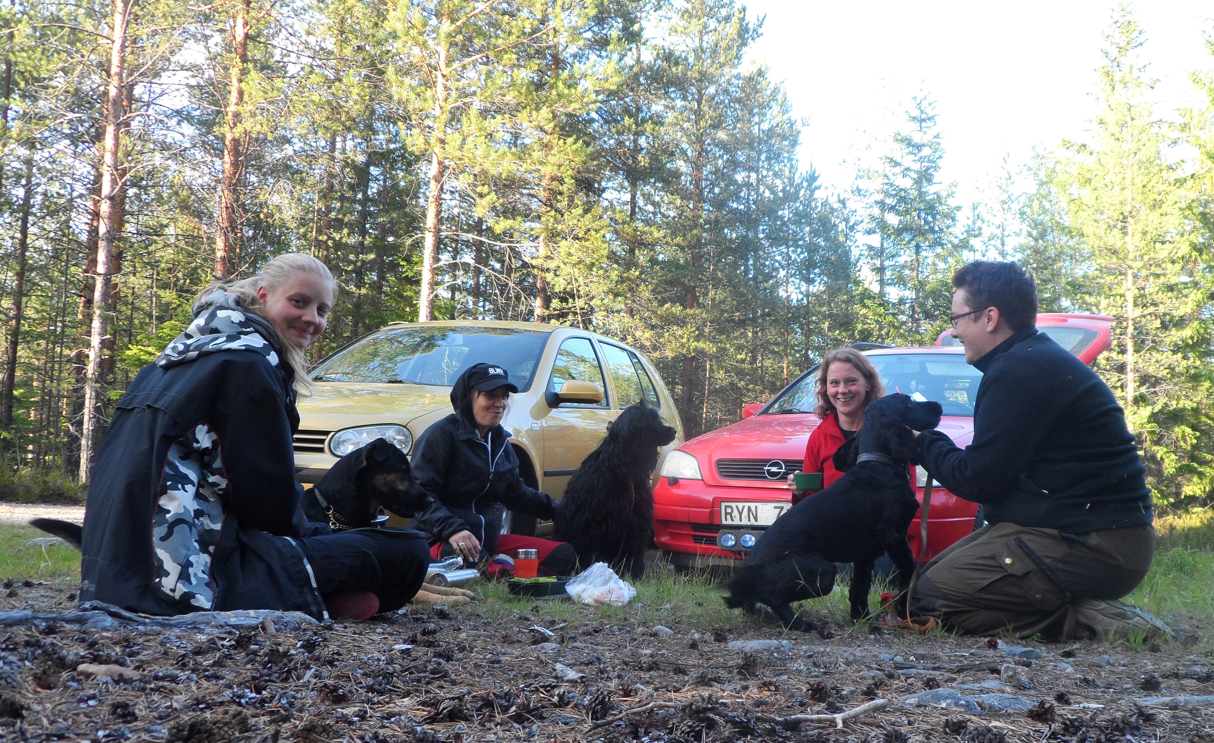 Sedan går jag en promenad med hundarna åt ett annat håll medan spåret ligger till sig. Låt det ligga i minst en kvart, gärna en halvtimme. Då hinner det sjunka ned i marken på ett bra sätt.