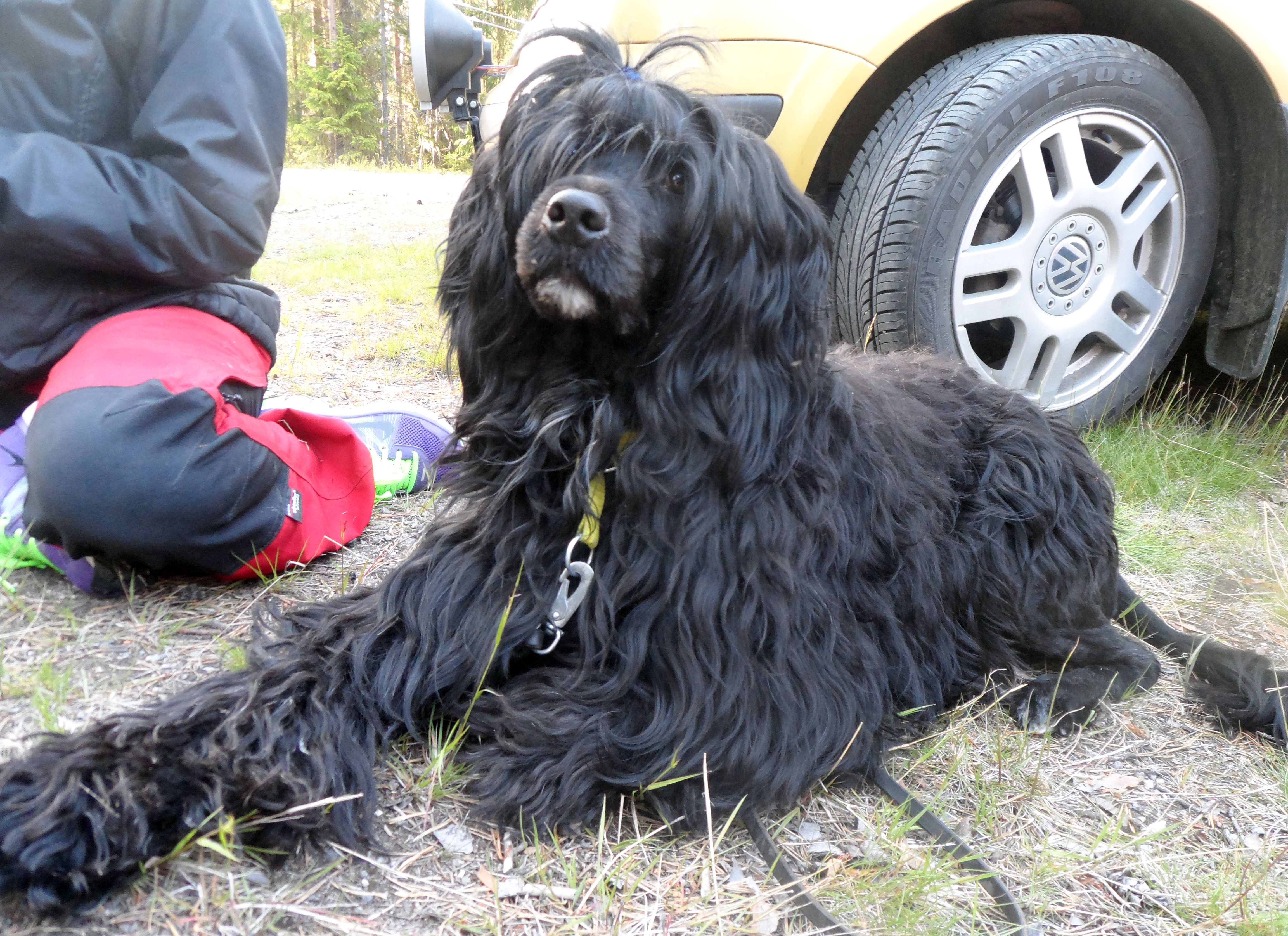 Skott hittar en godisbit och börjar tycka ett det här är ett intressant ställe. Han strosar vidare. Så håller vi på ett bra tag. Strosar i sakta mak, hittar någon godisbit, funderar, lyssnar på den jobbiga hackspetten som stör, sedan strosar vi vidare.