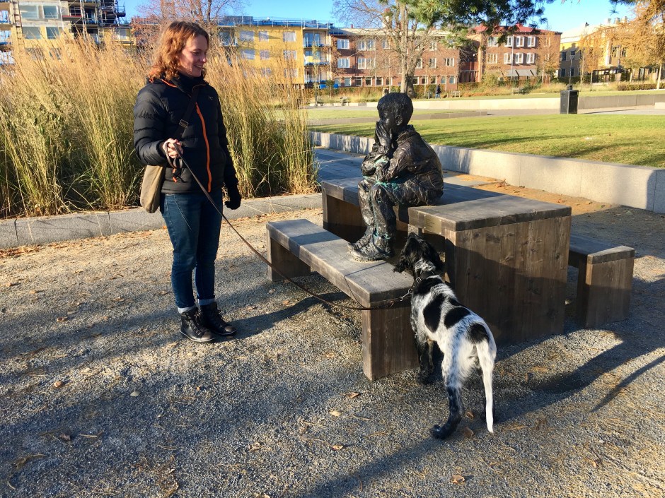 Först får du se hur jag tränar sitt och ligg stanna kvar. Jag tycker vi har gjort stora framsteg där så jag travar iväg ganska kaxigt, men det visar sig att det ännu inte sitter fullt så bra som jag trodde. Notera att jag inte skäller och bråkar på honom när han gör fel. Istället gör vi om, och så får han belöning när det blir rätt. På filmerna använder jag klicker för att få en bättre tajming. Är du ännu ingen klickeranvändare så säger du förstås istället ”bra” eller ” rätt så” exakt när hunden gör rätt.